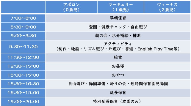※上記は標準的なスケジュールです。その日の職員の配置等により時間が変わる場合があります。